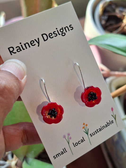 Glass Art - Anzac Enamel Red Earrings (small and large)