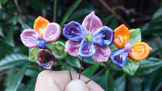 Unique art glass, handmade by us, including beautiful and bright glass sourced from Venice and Germany. Gorgeous Lampwork Glass Jewellery and Objets D'Art created from scratch.