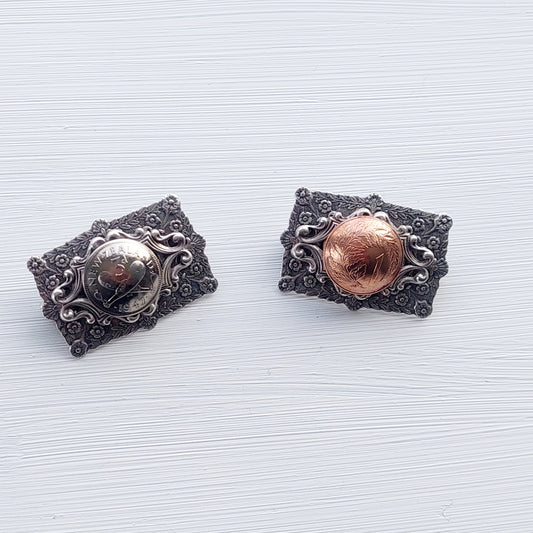 Re-minted Artisan Coin Earrings with Tiny Flowers