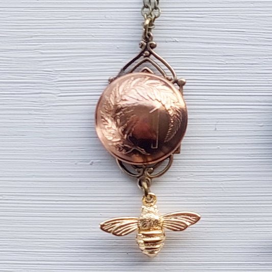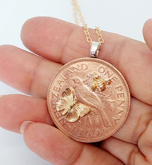 Re-minted One Penny Pendant with Golden Butterfly and Bee