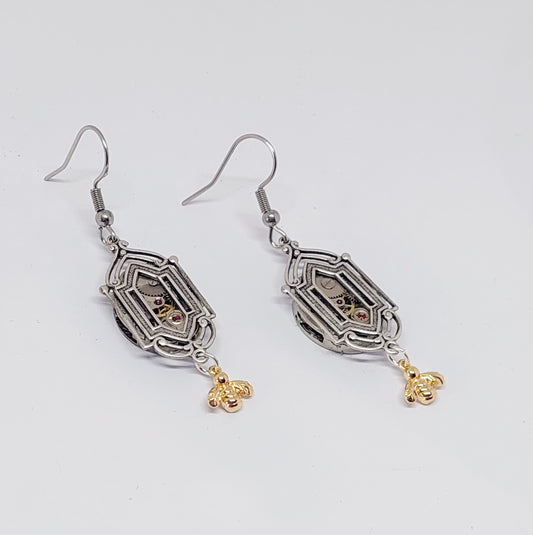 BESTSELLER! Art deco window earrings - vintage timepieces with gold bees