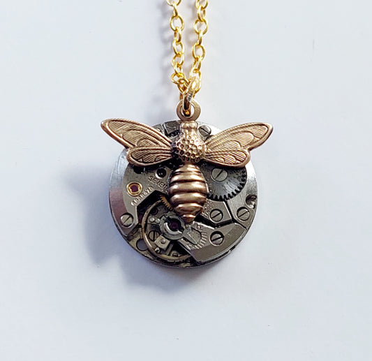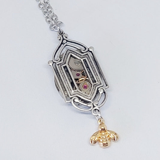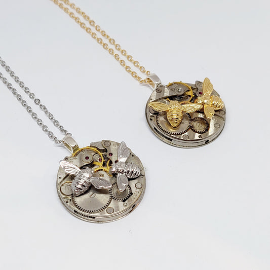 BESTSELLER! Timepiece Pendant with Golden Honeybees