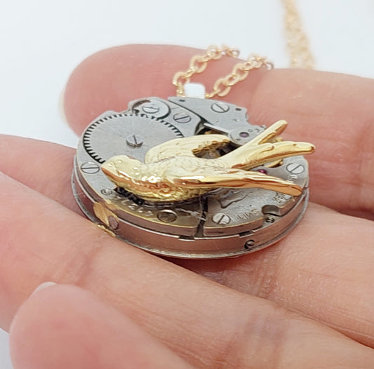 Art Deco Window Pendant with vintage timepiece and gold bee