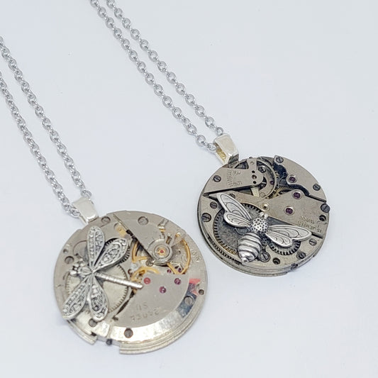 Timepiece Mini Pendants with bee or dragonfly - four to choose from!